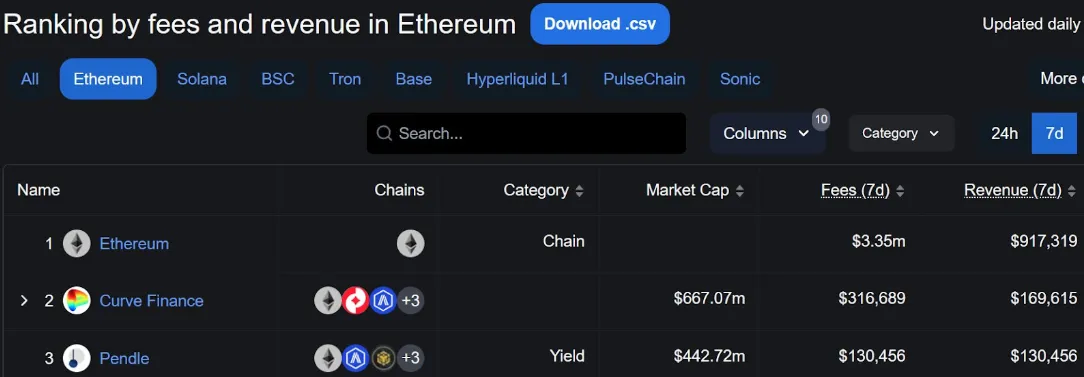 Pendle has rapidly gained traction in the crypto space, now ranking as the third-highest revenue-generating protocol on Ethereum—trailing only Curve and Ethereum itself.